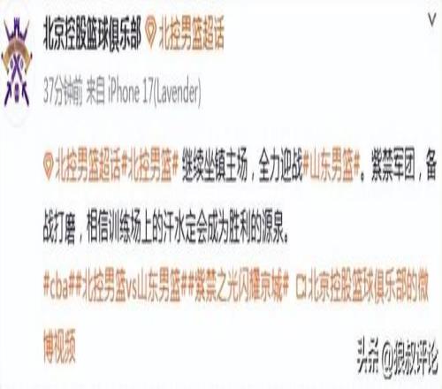 赛前,北控男篮官方罕见发出了相关的比赛预告表示:
