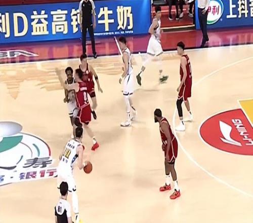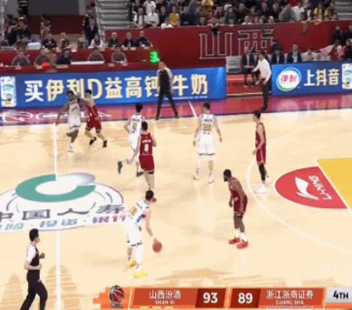 暂停回来浙江广厦发球,山西男篮外援奈特在防守过程中一直有移动的干扰动作,布朗之后与奈特对抗导致奈特倒地,裁判吹罚了布朗进攻犯规。