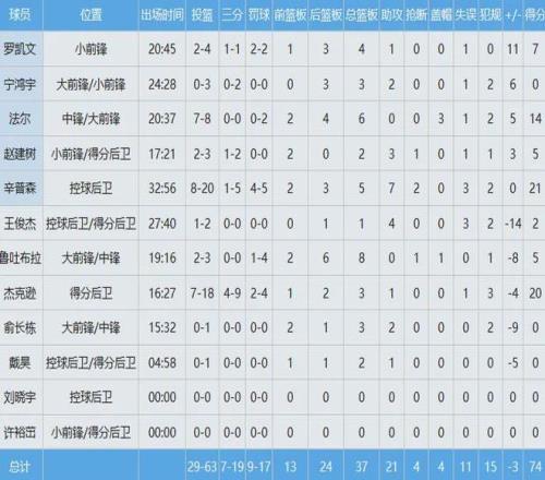 广东队数据如下:
