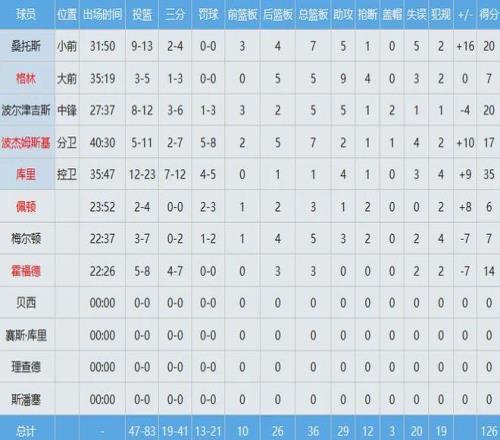 此役勇士五人得分上双,库里35分4助,桑托斯20分7板5助,波尔津吉斯20分5板5助,霍福德14分3板。