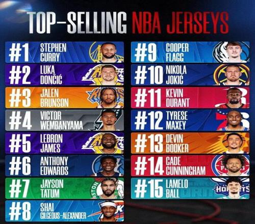 又到了季末结算期了,今天是本赛季常规赛球衣销量榜。