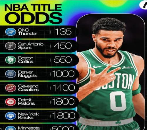 近日,NBA2025-26赛季附加赛马上将要迎来开打,东西部各四支球队将会争夺各自分区的最后两个季后赛名额,而在附加赛结束之后,就是季后赛的正式到来,目前已经确定晋级今年季后赛的球队有12支,从名次排序分别是东部的活塞、绿军、尼克斯、骑士、猛龙和老鹰。西部的雷霆、马刺、掘金、湖人、火箭和森林狼!立即,就有美媒给出了最新的球队季后赛夺冠概率,前五名分别是雷霆、马刺、绿军、掘金和骑士。