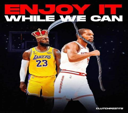“勒布朗·詹姆斯和凯文·杜兰特上一次在季后赛交锋还是在2018年,杜兰特季后赛对阵勒布朗的战绩9胜5负,也许这真的是詹杜的最后一次季后赛对决了,趁现在好好享受吧!”