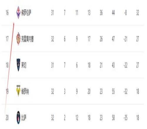 尽管换帅后一度回暖,但整体积分依然危险。更致命的是赛程压力:罗马、尤文、亚特兰大接连登场,每一场都可能成为“生死判决”。另外,在意甲历史上,几乎没有球队能在如此糟糕的开局下成功保级。佛罗伦萨目前积32分,仅仅比降级区高出5分,紫百合正在挑战一个极其残酷的概率。