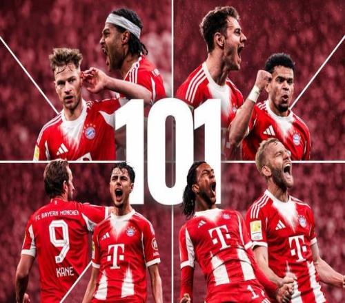 至此,拜仁本赛季德甲29场比赛已打入101球,追平自己在1971-72赛季创下的单赛季德甲最多进球纪录。