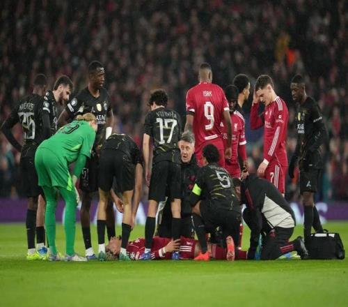 可以看到,这场比赛的激烈程度导致多名球员受伤。并不总是因为对抗受伤,也包括节奏过快、动作变形引发的伤病。第28分钟,利物浦前锋埃基蒂凯在无对抗情况下跟腱受伤离场,被担架抬出且泪流满面,他几乎确定错过世界杯。巴黎方面,努诺·门德斯和德西雷·杜埃也相继受伤下场。